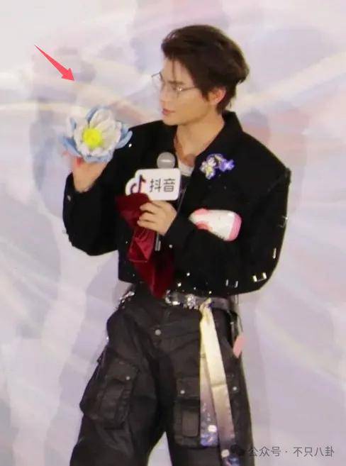 就昨天有粉丝去追剧团送给他一个莲花礼物,后来被拿来当道具。