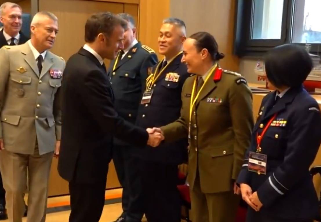 法国总统马克龙出席会议并欢迎各国军方代表