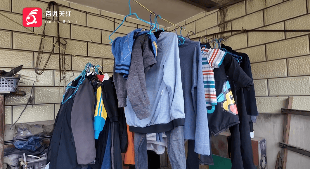 来到家里,只见碗柜里放着花色各异、七拼八凑来的碗筷,洗好的冬衣还在阳台上随风摆动。